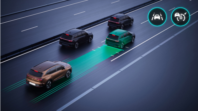 주행 중 앞차와의 안전 거리를 유지하도록 도와줍니다. 거리가 너무 잛아지면 시스템이 속도를 줄이고, 반대로 거리가 다시 확보되면 속도를 높입니다.