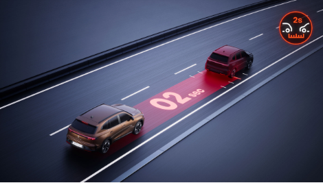 차량 전면에 있는 센서가 앞 차와의 안전 거리를 계산합니다.