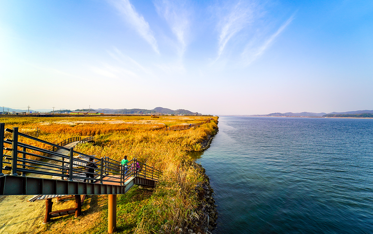 신성리 갈대밭은 영화 ‘공동경비구역 JSA’의 촬영지로도 유명해 많은 관광객들이 영화 속 장면을 떠올리며 이곳을 찾습니다. 갈대밭을 따라 조성된 ‘갈대 소리길’과 ‘철새 소리길’은 산책하기에 안성맞춤이며, 오두막에 앉아 강변을 바라보는 여유로운 시간도 이곳에서만 느낄 수 있는 특별한 경험입니다. 갈대밭 너머로 펼쳐지는 금강의 물결과 하늘이 어우러진 풍경은 마치 한 폭의 그림처럼 아름답고, 사진을 좋아하는 사람이라면 인생샷을 남기기에 더없이 좋은 장소입니다.