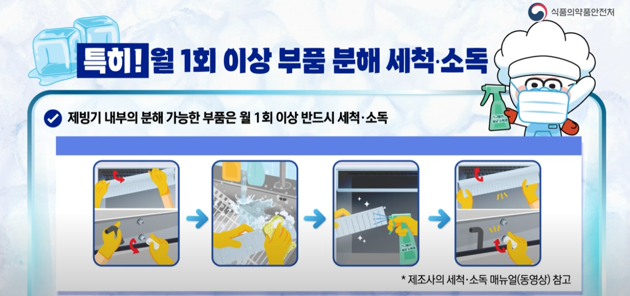 특히 제빙기에서 만든 얼음은 매일 사용하는 만큼 철저한 위생 관리가 필수적임을 다시금 환기시켰습니다.