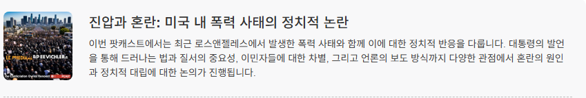 - 배경: 로스앤젤레스에서 불법 이민자 단속에 반대하는 시위가 발생하고 있으며, 이는 사회적 긴장을 초래하고 있습니다.