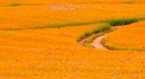 - 황화코스모스 군락: 광활한 주황빛 꽃밭