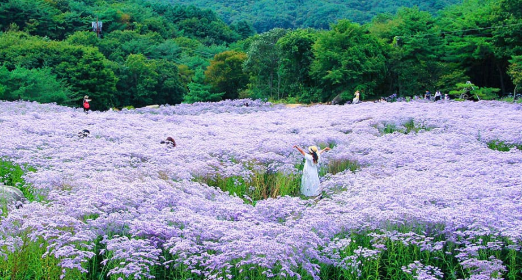 끝없이 펼쳐진 보랏빛 개미취가 장관을 이루며, 9월 말~10월 중순 사이가 절정입니다.