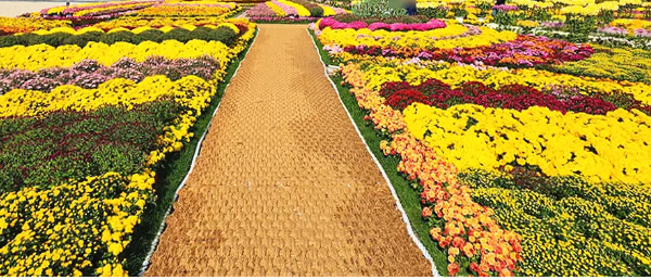 - 약 5만㎡(1만 5천 평) 규모의 꽃밭이 백일홍으로 붉게 물들어 장관을 이룸