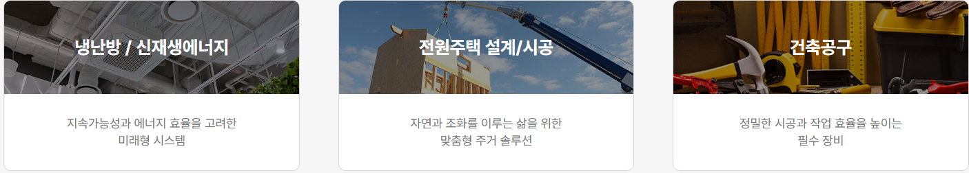 - 구조재, 외장재, 단열재, 창호, 도장방수재 등